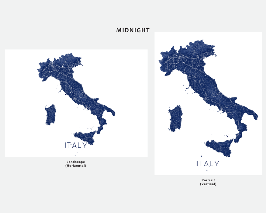 Italy Map Wall Art Print Poster, Topographic Europe Country Road